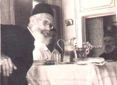 Khoury Hanna Dib having dinner at his Koubbeh, Tripoli house with another priest, and son Maurice