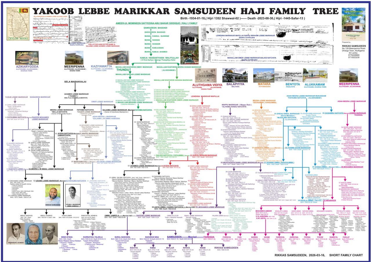 FAMILY TREE CHART OF YAKOOB LEBBA MARIKKAR SAMSUDEEN HAJI (SAMSUDEEN BAGHDADI FAMILY)